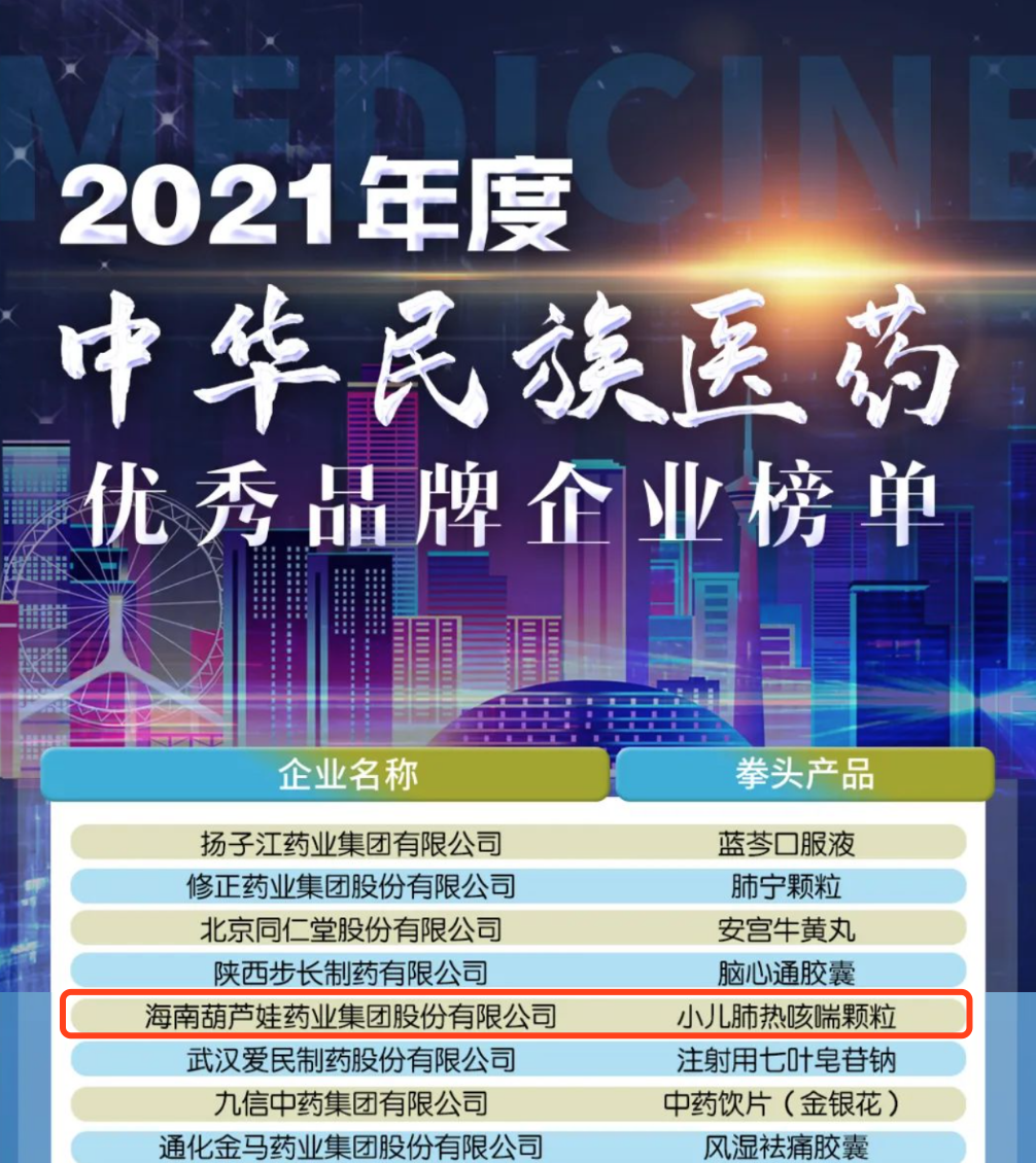 12月29日,全国工商联医药业商会发布了“2021年度中华民族医药优秀品牌企业榜单”,EBpay药业集团凭借黄金单品小儿肺热咳喘颗粒(4克)实力登榜。
